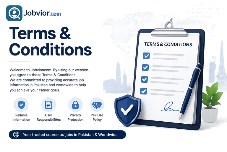 These terms explain how users can access and use our website for the latest jobs in Pakistan and worldwide, including government, private, and remote job updates.By accessing this website, you agree to accept and comply with these Terms & Conditions.